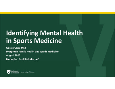 Short-term ProjectThis project examines how sports injuries affects mental health and identifies key psychological concepts related to injury and restriction from sport. From interviews with community members and providers, a screening questionnaire was created to start a conversation around mental health in injured athletes with the goal of destigmatizing the topic, identifying struggling patients, and offering appropriate resources.