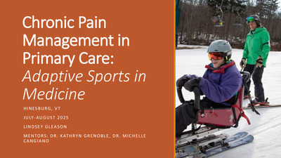 Short-term ProjectChronic pain affects over 50 million adults in the U.S., contributing to reduced quality of life, poor mental health and increased healthcare utilization. Primary care physicians (PCPs) play a critical role in managing chronic pain through both pharmacologic and non-pharmacologic means. While there is a need for more robust research on the impact of exercise on chronic pain conditions, data suggests that exercise is likely to result in improvements in pain and function through breaking the cycle of pain, sedentary behavior, and worsening disability. This project aims to connect patients living with chronic pain with Vermont Adaptive, a nationally recognized organization that empowers individuals with disabilities through inclusive sports and recreational programming. To streamline referrals, a dedicated EPIC dot phrase (.chronicpainadaptsport) has been developed, enabling PCPs to efficiently promote physical activity in a supportive, accessible environment.